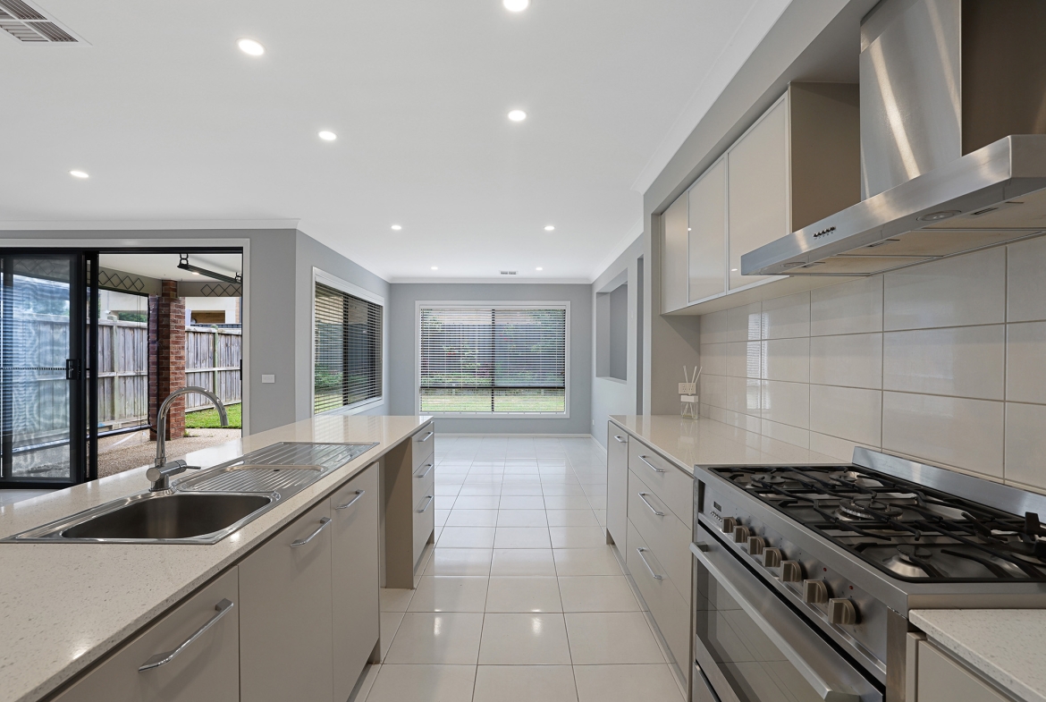 With separate multi-living zones, this home offers a rumpus room, open plan living, and a lounge area, providing plenty of space for the whole family. The private and expansive main bedroom features a large walk-in robe and stylish ensuite, while the remaining three bedrooms are serviced by the main bathroom and a powder room. A modern galley-style kitchen with stone benchtops and quality appliances flows into a spacious dining and family living area, complemented by a reverse cycle ducted heating and cooling system.