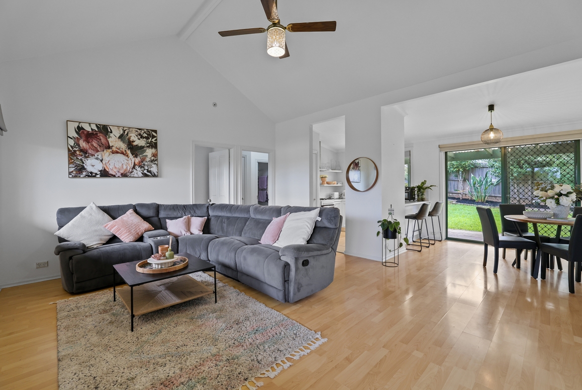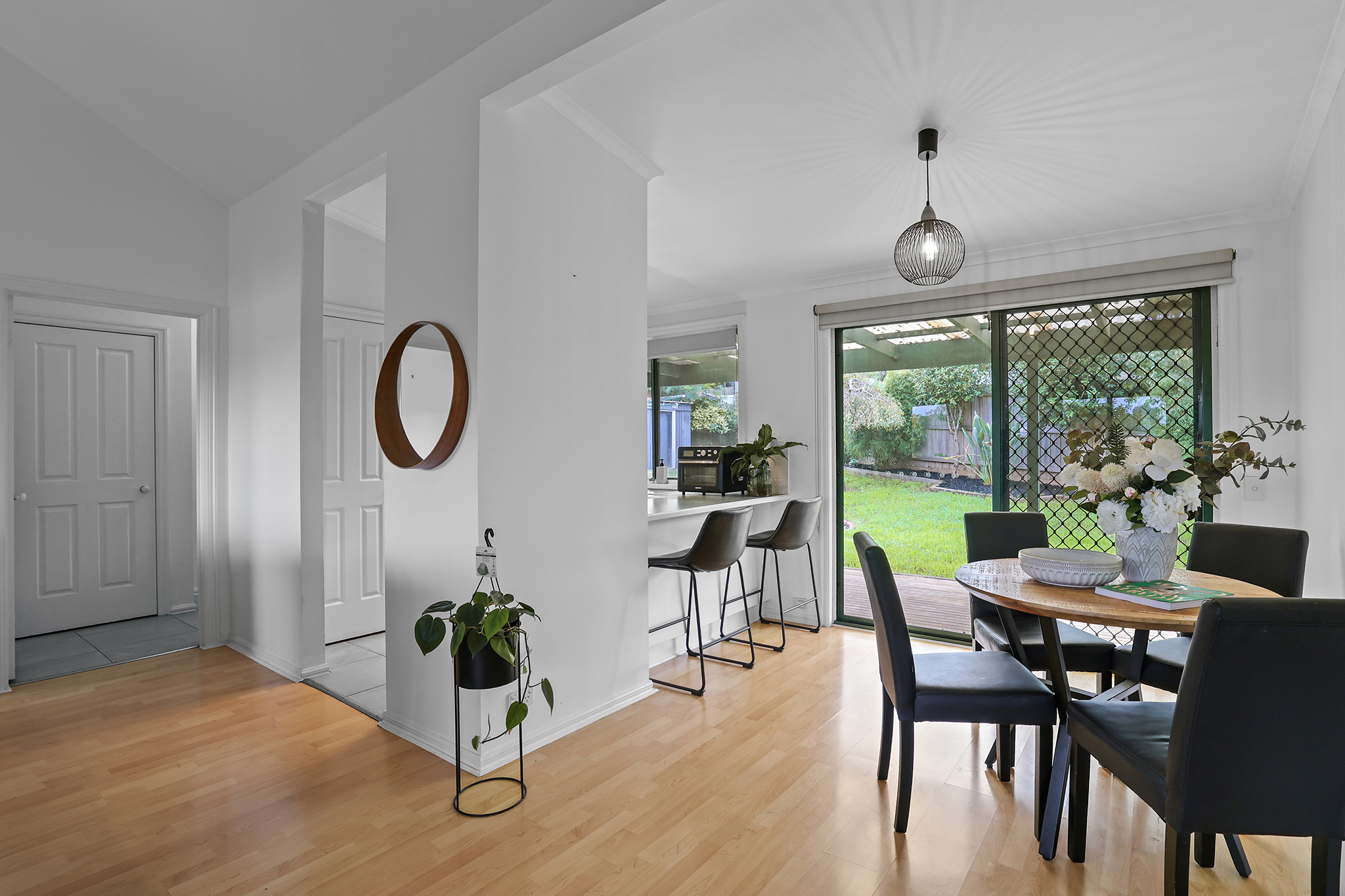As you arrive, the home immediately welcomes you with its peaceful setting and inviting street presence. Inside, the layout opens into a light-filled open plan living space featuring floorboards and high ceilings, creating a sense of space and warmth throughout the home. Designed for year-round comfort, the living area is serviced by a centrally located split system and gas wall heater, ensuring a comfortable environment in every season.