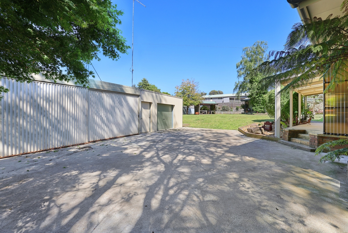 Step outside and discover a large alfresco area overlooking the backyard, complemented by a powered gazebo — ideal for outdoor dining or year-round entertaining. The property also includes a garage, a 4-bay shed with ample space for boats, vehicles, and a workshop area, plus established gardens with fruit trees.