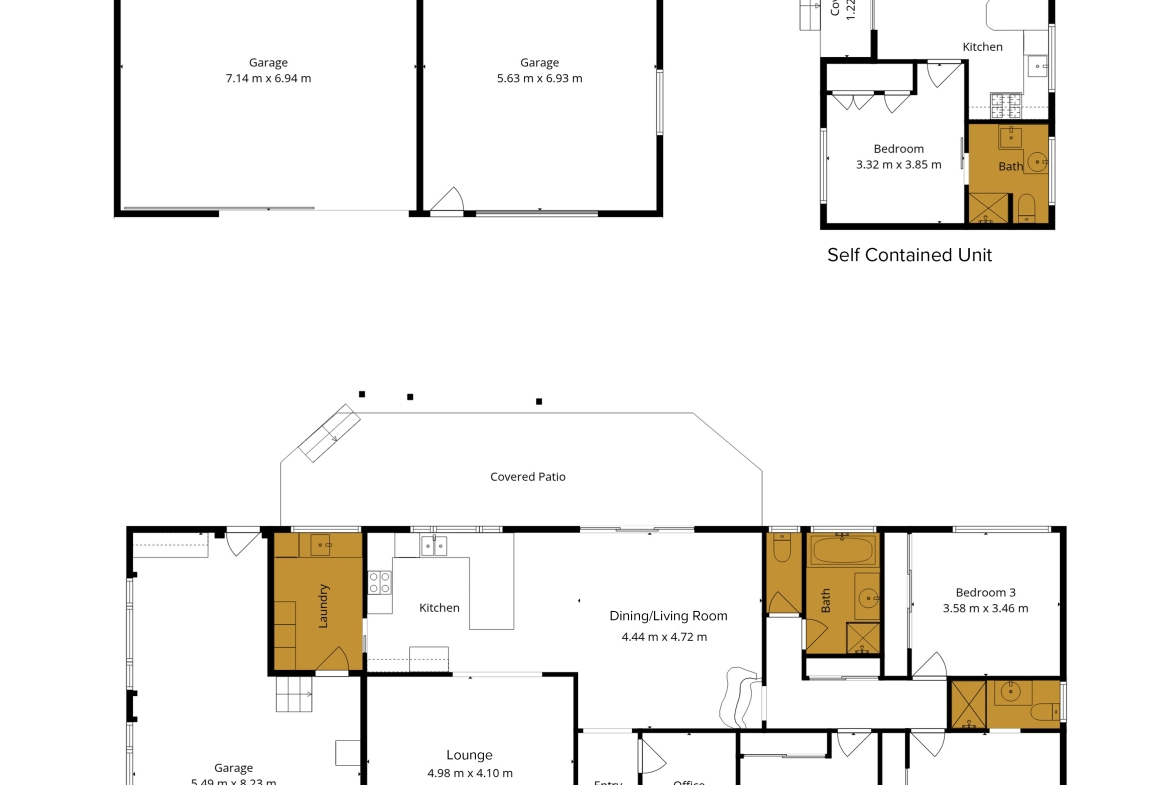 The main residence features three bedrooms and two bathrooms, with a spacious kitchen connecting to the living, dining, and lounge areas — perfect for everyday family life and effortless entertaining.